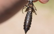 Am 13.06.2020 fand bei sommerlichen Temperaturen und sonnigem Wetter die diesjährige Libellen-Exkursion statt. Neben vielen verschiedenen Liebellenarten konnte unter anderem die Große Königslibelle (Anax imperator) bei der Eiablage als auch die Blaue Federlibelle (Platycnemis pennipes) und das Große Granatauge (Erythromma najas) beobachtet werden. Außerdem konnten wir das Paarungstandem der Hufeisenjungfer (Coenagrion puella) am Gewässerrand sichten. Während der Paarung und der Eiablage im Wasser, packt bei vielen Libellenarten das Männchen das Weibchen mit seinen Zangen, welche er am Hinterleib trägt, im Nacken: Damit stellt das Männchen sicher, dass seine befruchteten Eier im Wasser abgelegt werden und sich damit zu Larven entwickeln können, erläuterte Marcus Held. Im Allgemeinen durchläuft eine ans Wasser gebundene Libellenlarve mehrere Häutungsschritte, um nach der letzten Häutung, welche außerhalb des Wassers stattfindet, als erwachsenes beflügeltes Tier davonzufliegen. Solche Larvenhäute nennt man Exuvien. Davon fanden wir an der zuletzt besuchten Lache sehr wahrscheinlich die sogenannte Larvenhaut der Keilfleck-Mosaikjungfer (Aeshna isoceles).