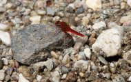 Im zweiten Teil der Exkursion wurden zwei Lachen als typische Standgewässer besucht. Dabei konnten die interessierten Teilnehmer typische Vertreter wie die Feuerlibelle (Crocothemis erythraea) und sowohl das Kleine (Erythromma viridulum) als auch und Großes Granatauge (Erythromma najas) beobachten. Beide Granataugenarten benötigen eine Schwimmblattvegetation auf dem Gewässer, da sie die Wasserfläche kaum verlassen und auf den Pflanzenblättern auch ruhen.