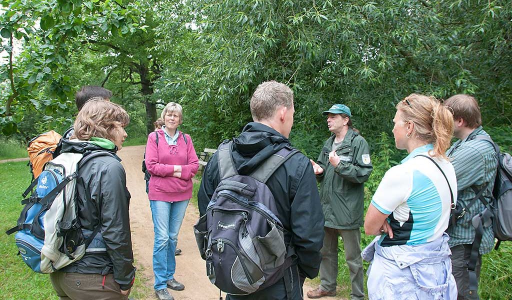 So war der gesamte Tag mit erlebnisreichen Rundgängen in und um den Schlosspark Lützschena, in die Leipziger Burgaue und die Papitzer Lachen gefüllt. Den Startschuss gab René Sievert von NABU-Regionalverband Leipzig am frühen Morgen um 7 Uhr, als er gemeinsam mit den Vogelfreunden einmal genauer hinsehen und –hören wollte, wer im Auwald singt und flattert. Weit über 30 verschiedene Arten konnten gehört bzw. gesichtet werden, darunter der Grünspecht, der Turmfalke und der Graureiher.