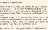 Beim Onlinespiel "Forester" schlüpfen Spielerinnen und Spieler in die Rolle des Auwaldförsters. Es geht darum, den Wald nach ökologischen Kriterien so zu bewirtschaften, dass er als wertvoller Lebensraum erhalten bleibt. Welche Probleme sich auf dem Weg dorthin zeigen, kann man beim Spielen herausfinden. Außerdem gibt es viele Informationen zur Tier- und Pflanzenwelt, die man per Mausklick selbst erkunden kann. Beispielsweise werden die wichtigsten Baumarten des Leipziger Auwalds, ihre Ansprüche und Besonderheiten ausführlich vorgestellt.
