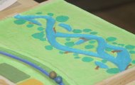Wie verändert sich unser Auwald aufgrund verschiedener menschlicher Einflüsse? Welche Baumarten sind für unseren Auwald eigentlich typisch? Und wie wirkt sich die Form des Gewässerbetts eines Flusses - ob kanalisiert oder ursprünglich mäandrierend - auf dessen Fließgeschwindigkeit aus? Diesen Fragen konnte man mit verschiedenen Spielen und Experimenten auf den Grund gehen. Kartenmaterial gab außerdem über den aktuellen Projektstand Auskunft und auch unsere Projektpublikationen fanden interessierte Neubesitzer. Trotz der hochsommerlichen Temperaturen fanden viele Besucherinnen und Besucher den Weg in den Kubus des UFZ und schwärmten bis in die Nacht hinein an die Info- und Mitmachstände aus.