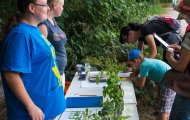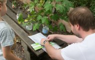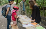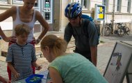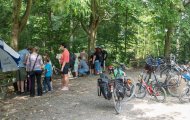 Schon zu Beginn der Veranstaltung um 10 Uhr trafen zahlreiche Fahrradfreundinnen und -freunde am Naturkundemuseum ein, so dass sich binnen kurzer Zeit eine Schlange vorm Startstand bildete, an dem wir die Karte und das Sammelheft für die diesjährige Rallye verteilten. Und der Zulauf hielt an! Etwa 70 Teilnehmerinnen und Teilnehmer starteten zwischen 10 und 13 Uhr und absolvierten erfolgreich unsere Schnitzeljagd, bei der man eine Menge über die Gewässer unserer Stadt, die Auwaldpflanzen und –tiere, den Waldboden mit seinem Auenlehm als Standortgrundlage, aber auch als wichtigen Rohstoff erfahren konnte. Den Menschen etwas über den besonderen Wert einer Auenlandschaft – diesem Mosaik aus Wald, Wiese und Wasser – zu vermitteln, die Ökosystemleistungen konkret zu benennen und anschaulich zu zeigen – das hatten sich alle Akteure, die die Rallye mit einer Station und den dort angebotenen Aktionen unterstützen, auf die Fahnen geschrieben. Auf etwa 7 Kilometern ging es durch das Rosental bis zum kleinen Froschteich hinter dem Rosentalhügel und wieder zurück zum Naturkundemuseum. Den Weg, den man fahren wollte, konnte jeder anhand der ausgehändigten Karte selbst bestimmen. Vorgegeben waren lediglich die Stationen, an denen man sich quasi entlanghangelte. Betreut wurden diese vom Naturkundemuseum, der GeoWerkstatt, dem NABU Leipzig, der Auwaldstation, dem Schulbiologiezentrum und dem Team der Lebendigen Luppe. Bei jeder Einrichtung gab es eine Menge Interessantes zu erfahren: es wurden Quizfragen gelöst, Spiele und Experimente gemacht und man konnte sein Wissen über Flora und Fauna unter Beweis stellen. Wurde das erfolgreich geschafft, gab es einen Aufkleber ins Sammelheft und ein Kreuz auf die Landkarte – auf dessen Suche man sich dann in der nächsten Etappe begeben musste.