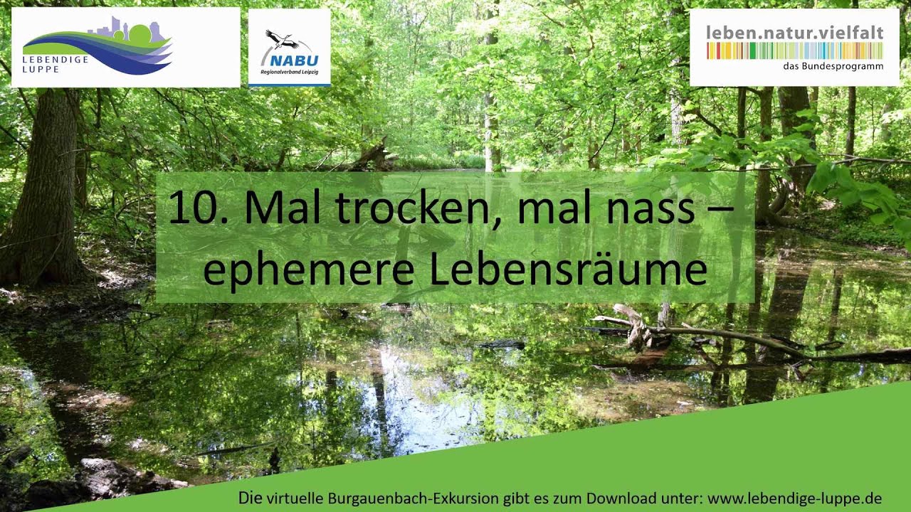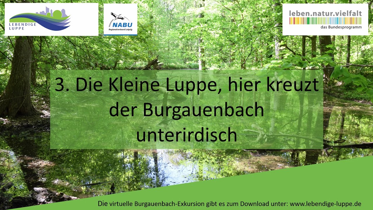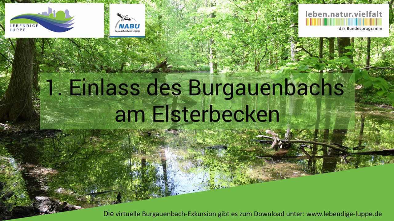 Das Projekt Lebendige Luppe und der NABU Leipzig laden Sie ein zu einer Wanderung anhand von GPS-Daten, Fotos und kurzen Videobeiträgen, welche hier auf der Seite und auch auf Google Maps an den entsprechenden Stellen am Burgauenbach anzusehen sind. Zu Fuß oder mit dem Fahrrad entdecken Sie den Auwald und erhalten interessante Fakten zum Burgauenbach und der ihn umgebenden Landschaft.
