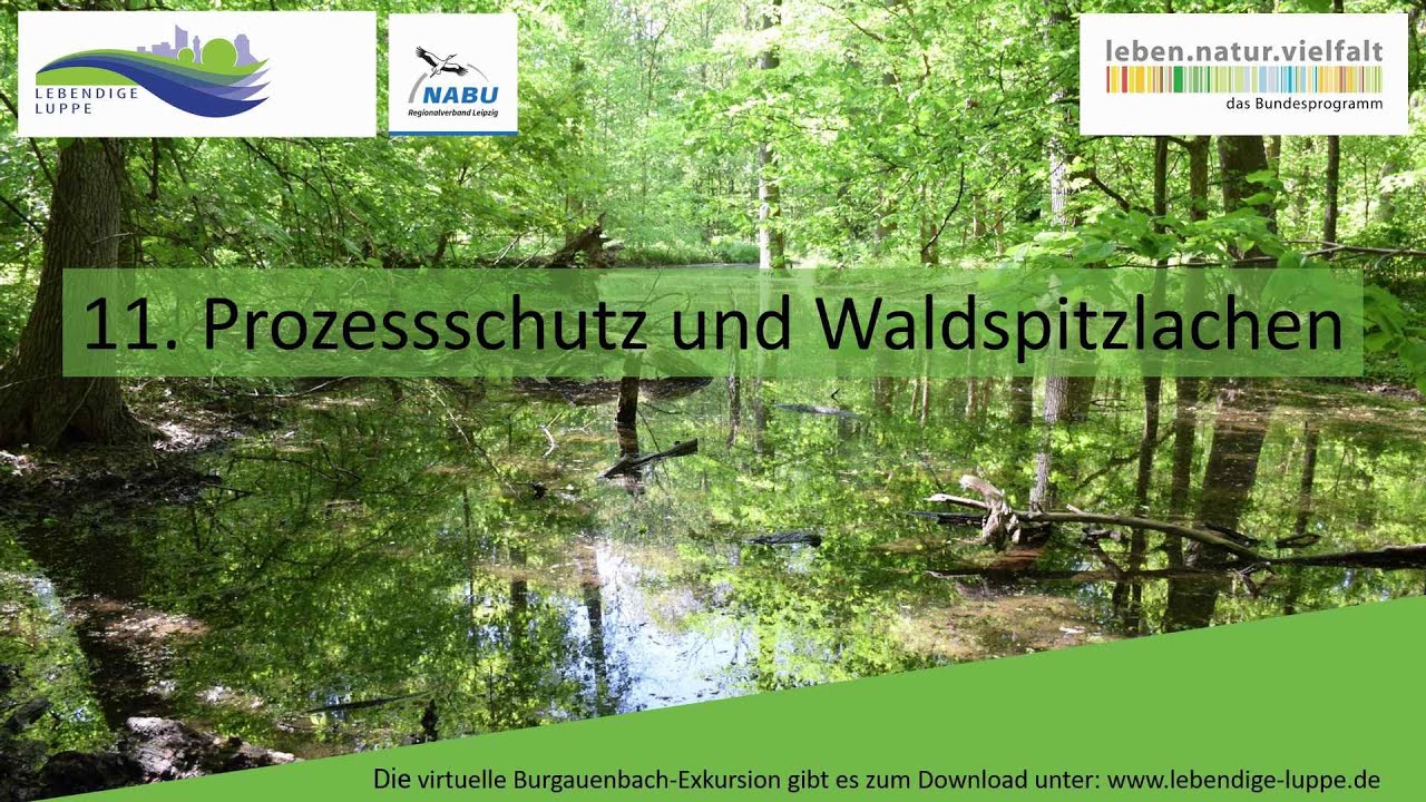Um die Lachen an der Waldspitze als neu gewonnene Lebensräume zu erhalten, wurde der Burgauenbach direkt neben ihnen entlang geführt. Damit dennoch ein regelmäßiges Austrockenen gewährleistet werden kann, was zum Beispiel den Fischbesatz gering hält und die wichtigen ephemeren Lebensräume schafft, darf die Bewässerung nur indirekt erfolgen: Das Wasser drückt durch den schmalen Erdwall. Allerdings wird der abgrenzende Wall immer wieder zerstört, so dass die Lachen seit einigen Jahren ganzjährig Wasser führen. Dies hat die Artenzusammensetzung verändert, wie die Erhebungen des NABU Leipzig zeigen konnten.
