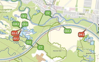 Die Steckbriefe des Fächers erläutern auf Vorder- und Rückseite die Entstehung der Auenlandschaft, geben einen Überblick über Fließgewässer sowie alle relevanten Lebensräume und skizzieren die Bedeutung der Auenlandschaft durch seine Ökosystemleistungen, auch für uns Menschen. Es wird damit ein einfacher inhaltlicher Zugang zum Ökosystem Aue ermöglicht und damit das aktive Naturerleben vor Ort unterstützt.