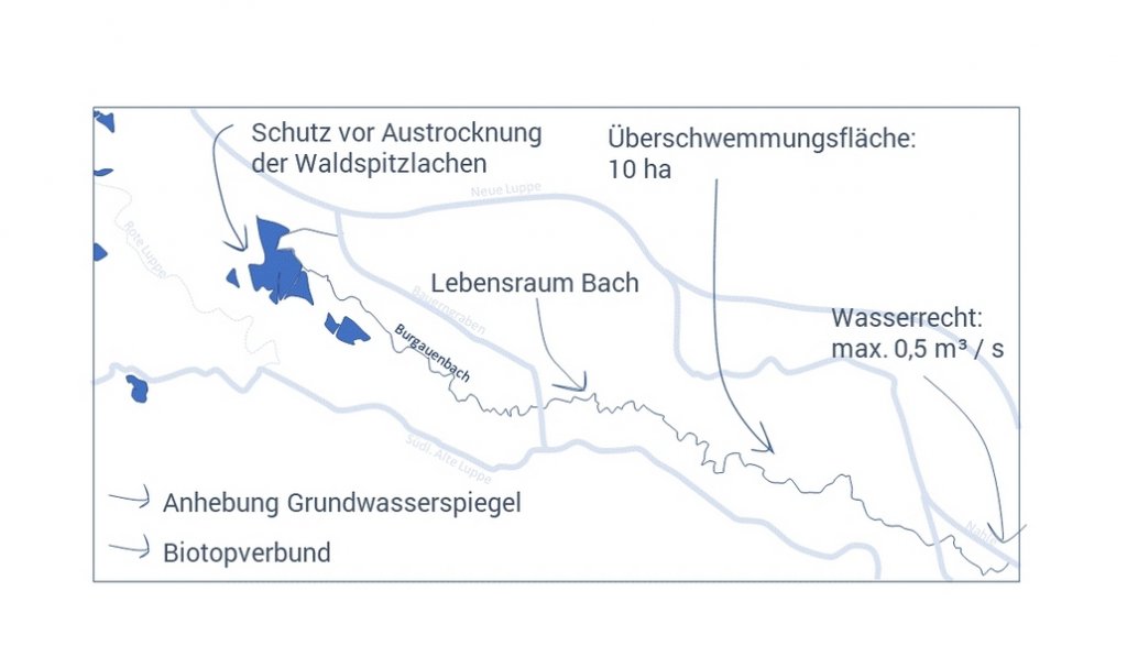 In Kooperation mit der Stadt Leipzig hat der NABU Sachsen die Maßnahmenvorschläge und die Vorplanungen für die Aufwertung des Burgauenbachs erarbeitet sowie fachliche Zuarbeiten für die hydrologische Modellierung des Gebiets und speziell der hydrologischen Wirkungen des Burgauenbachs erbracht.