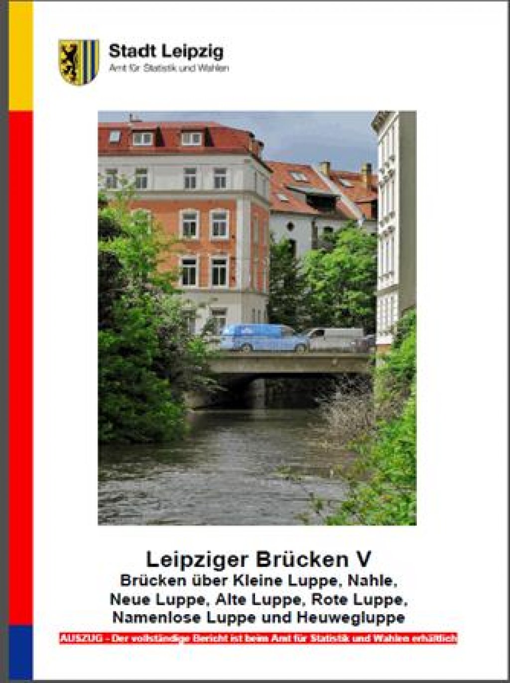 Das Amt für Statistik und Wahlen der Stadt Leipzig hat den 5. Band der Broschürenreihe „Leipziger Brücken“ veröffentlicht. Die aktuelle Broschüre widmet sich der historischen Entwicklung der Brücken über die Luppegewässer. Das Projekt „Lebendige Luppe“ wird dabei als Zukunftsprojekt erwähnt. Die Broschüre kann im Amt für Statistik (E-Mail: statistik-wahlen_at_leipzig.de) bestellt oder direkt am Burgplatz 1, Zimmer 228, gekauft werden. Sie kostet 8 €.